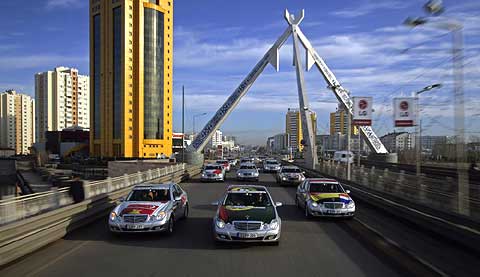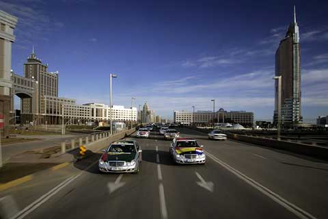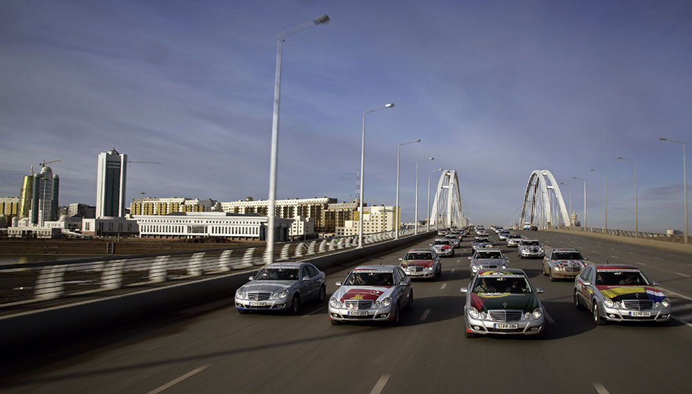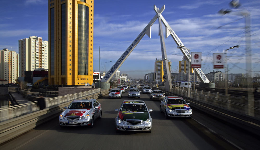 Während der aktuelle Film “Borat” in diesen Tagen ein satirisch-humoristisches Bild auf die aufstrebende Region Kasachstan wirft, konnten sich die Teilnehmer der E-Class Experience am heutigen Tag von den Gegensätzen dieses aufstrebenden Landes und der Gastfreundschaft seiner Bewohner vor Ort ihr eigenes Bild machen. Neben den grenzenlosen Weiten der kasachischen Steppe fuhren sie mit ihren E-Klassen schließlich bis zur neuen Boomtown Astana, die Almaty als Hauptstadt abgelöst hat.