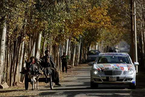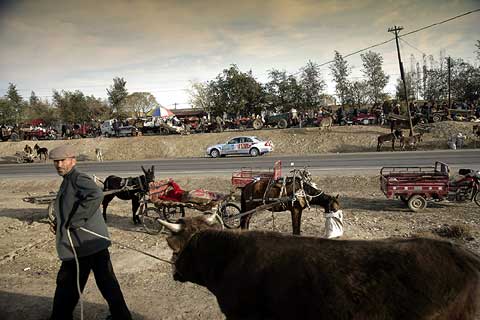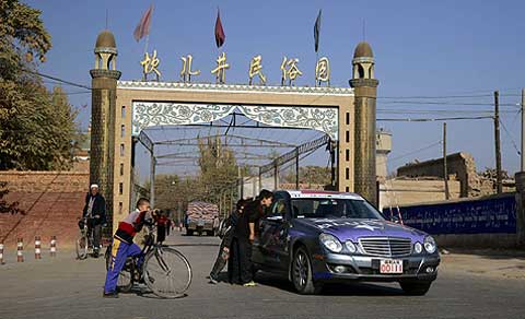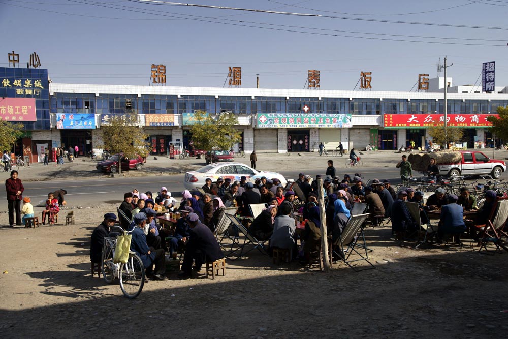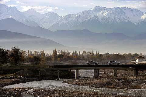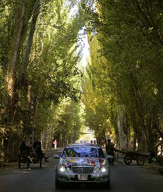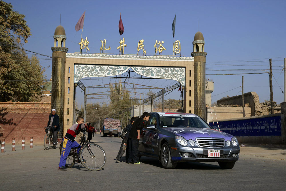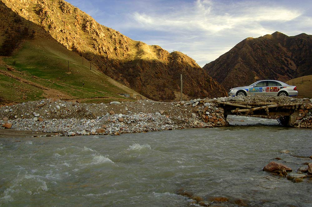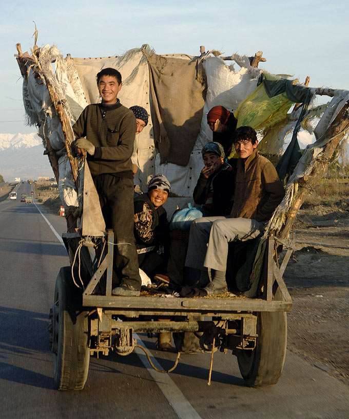 Je ärmer die Gegend, desto freundlicher die Menschen: An den Straßen wurde den E-Klassen, die hier wie von einem anderen Stern wirken, oft begeistert zugewunken. Die breite Verbindungsachse nach China folgt im Tal des Ili den historischen Spuren der Seidenstraße, erinnert heute aber mit ihren zahllosen Tankstellen, Straßendörfern und fliegenden Händlern für Waren aller Art von Gemüse bis Motoröl eher an die legendäre Route 66 in den USA.