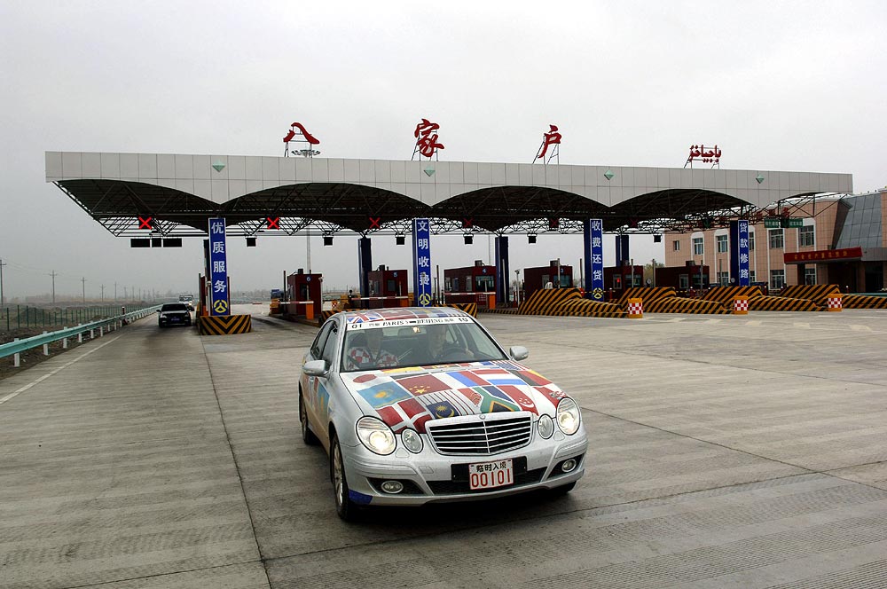 In Korgas hat die E-Klasse Langstreckenflotte aus 33 E 320 CDI und drei 320 BLUETEC Limousinen die Grenze zu China überquert und damit das Zielland des Diesel-Marathons von Paris nach Peking erreicht. Am größten Grenzübergang für den Straßenverkehr im Westen Chinas erhielten alle Fahrzeuge neue Kennzeichen und die Fahrer Führerscheine mit chinesischen Schriftzeichen. Schon im 6. Jahrhundert befand sich an dieser Stelle eine wichtige Poststation der Seidenstraße. Erst seit 1992 ist Korgas für den internationalen Transitverkehr geöffnet.