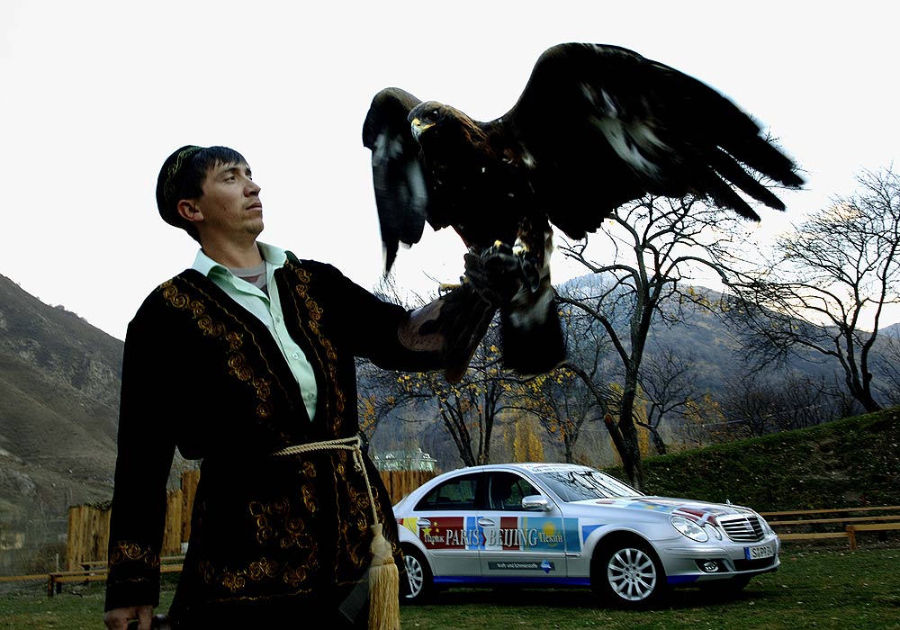 Überraschte die kasachische Millionenmetropole Almaty noch mit eurasischem Flair und einer großen Population von Mercedes-Benz Limousinen der E- und S-Klasse der aktuellen sowie fast aller früheren Baureihen, so bewegte sich nur wenige Kilometer außerhalb auf der breiten Überlandstraße alles, was Beine hat: Fußgänger, Rinder, Schafe, Pferde, Hunde, Katzen und Hühner.