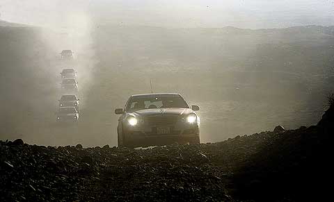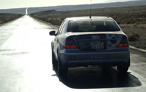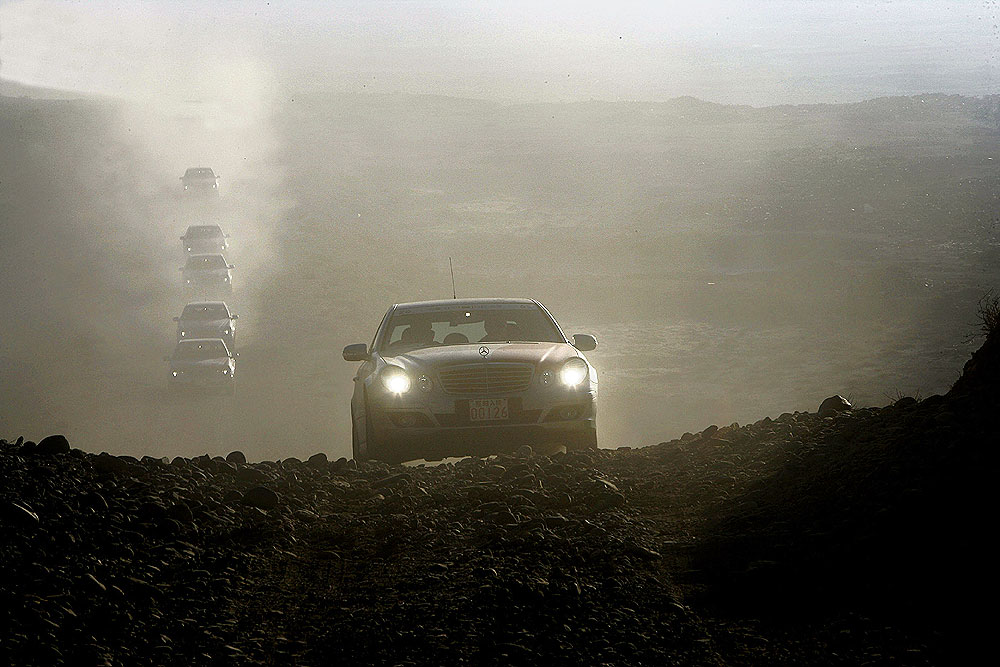 Einen Tag in der endlosen Wüste verbrachten die Teilnehmer der E-Class-Experience und waren von der Vielfalt der Landschaft nachhaltig überrascht. Eine Schleife abseits der Hauptverkehrsstraße machte mit dem ursprünglichen Landleben bekannt, das vom Kampf um fruchtbaren Boden geprägt ist. Danach erlebte das Langstreckenteam eine Überraschung: eine 180 Kilometer lange Autobahnbaustelle.