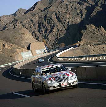 Auf der Autobahn kamen besonders die Vorteile der DISTRONIC in dem Mercedes-Benz E 320 CDI zum Zuge. Für die Fahrer einfach bequem: nur das Tempo einstellen und der Wagen bremst bei langsameren Fahrzeugen ab und beschleunigt danach wieder auf die ursprüngliche Geschwindigkeit. Selbst deren schmale Silhouette von den ortsüblichen Kleinmotorrädern erkannte das System zuverlässig. Weil außerdem zunehmend dichter Nebel die Sicht erschwerte, erhöhte die DISTRONIC nicht nur den Komfort, sondern auch die Sicherheit.