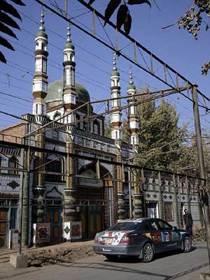 Eine weitere Überraschung hatte es bereits kurz hinter der Grenze gegeben. Eine große Delegation örtlicher Würdenträger und lokaler Medien begrüßte die Teilnehmer feierlich mit einem roten Teppich, einem aufblasbaren Drachentor und riesigen Lampions. Auch bei der Einfahrt am Tagesziel Yining, dem politischen und wirtschaftlichen Zentrum des Ili-Distrikts im Uigurischen Autonomen Gebiet Xinjiang, fühlten sich die Langstreckenfahrer erneut wie prominente Filmstars und mußten sogar Autogramme geben, was manchen für die lange Wartezeit hinter der Grenze entschädigte.