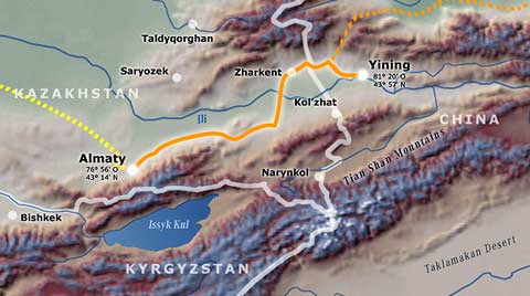 Von Almaty nach Yining: Die breite Verbindungsachse nach China folgt im Tal des Ili den historischen Spuren der Seidenstraße