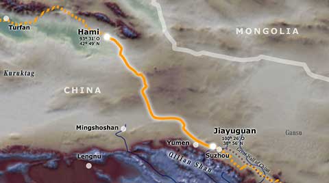 11.11.2006 – 22. Tag Start in der Oasenstadt Hami 20. Tagesetappe über 676 Kilometer nach Jiayuguan Wetter: windig und sonnig, 13,5 Grad Celsius