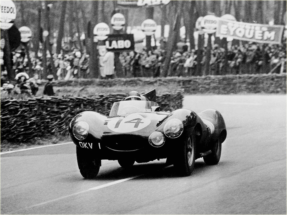 Nach hartem Kampf gegen die Konkurrenz von Aston Martin, Maserati und Ferrari sahen im Juni 1957 nach 24 Stunden Ron Flockhart und Ivor Bueb auf einem von der Ecurie Ecosse genannten D-TYPE mit 3,8 Liter-Motor als Erste die Zielflagge. Platz zwei belegte das zweite Auto der schottischen Crew, ein von Ninian Sanderson und John Lawrence gesteuerter D-TYPE mit kleinerem 3,4 Liter-Reihensechszylinder. In einem weiteren Jaguar liefen die Franzosen Jean Lucas und Jean-Marie Brussin (“Mary”) auf Platz drei ein, gefolgt vom Journalisten Paul Frère und dessen Partner “Freddy” Rousselle im gelben D-TYPE der Equipe National Belge. Hinter dem besten Ferrari rundeten Duncan Hamilton und Masten Gregory im zweiten “Jag” mit 3,8-Liter-Triebwerk das makellose Resultat ab – fünf Jaguar gingen an den Start und fünf gingen siegreich ins Ziel. Es war erst das zweite Mal in der Le Mans-Geschichte, daß ein Hersteller einen Vierfach-Sieg verbuchen konnte – zuvor war dies nur Bentley im Rennen von 1929 gelungen.