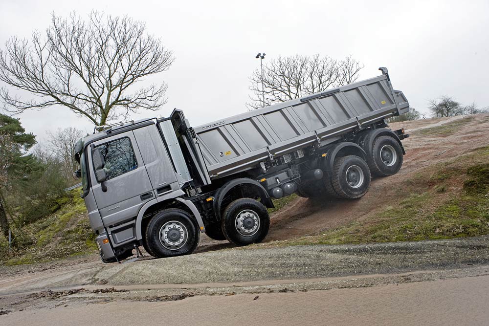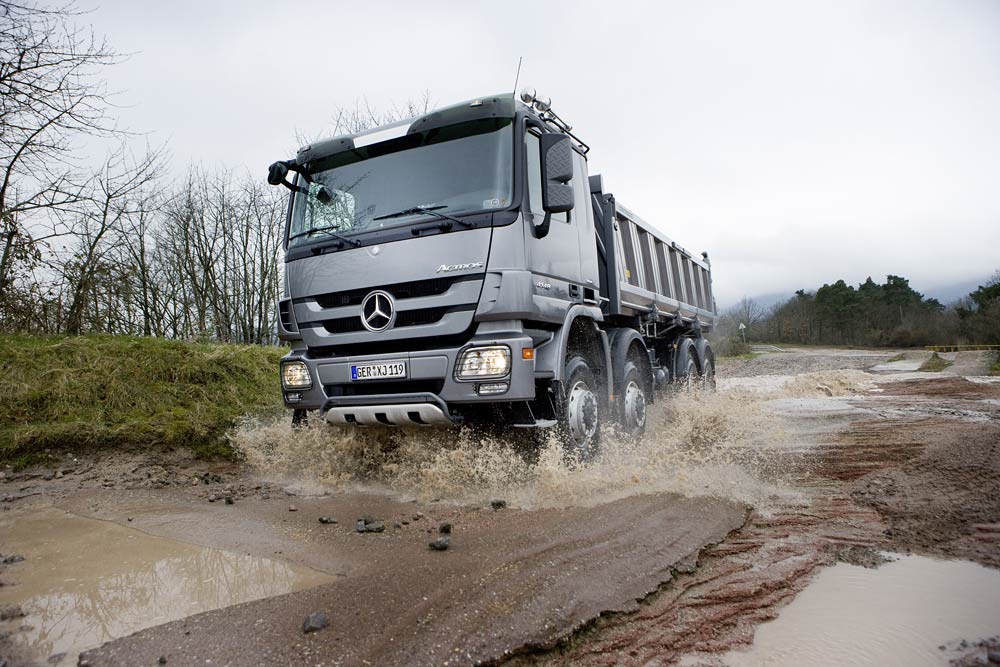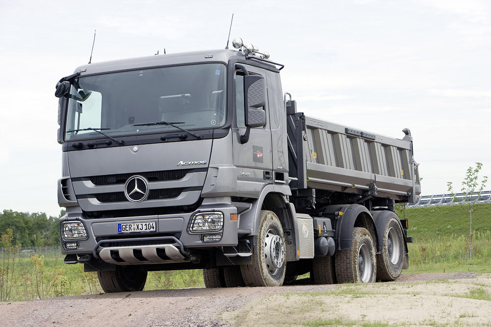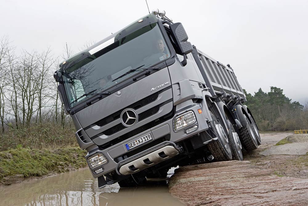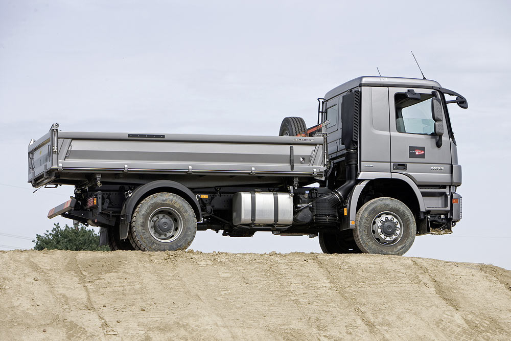 Robustheit, Zuverlässigkeit und Geländegängigkeit sind Synonyme für den ACTROS im Baustelleneinsatz geworden. Danach richtet sich konsequent die Technik und Ausstattung des Actros: von den kraftvollen, durchzugsstarken und sparsamen Sechs- und Achtzylindermotoren über den extrem stabilen Rahmen bis zur äußerst robusten Außenplanetenachse für optimale Bodenfreiheit. Die Variantenvielfalt bietet für jeden Einsatz die richtige Aufbaumöglichkeit – ob für Kipper, Krankipper oder Betonmischer.