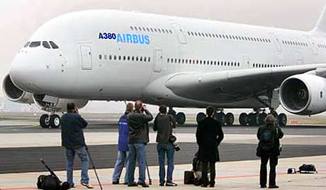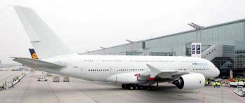 Das weltgrößte Passagierflugzeug hat am 29.Oktober 2005 zum ersten Mal einen Test auf einem internationalen Verkehrsflughafen erfolgreich absolviert. Ohne Probleme setzte die aus dem französischen Toulouse kommende Maschine am Samstag um 8.56 Uhr mit etwa 240 Stundenkilometern auf dem Frankfurter Flughafen auf. Rund 10 000 Zuschauer verfolgten das Ereignis. Im Morgennebel war der Landeanflug des doppelstöckigen Riesenflugzeuges, das bis zu 853 Passagiere befördern könnte, allerdings nur kurz zu sehen.