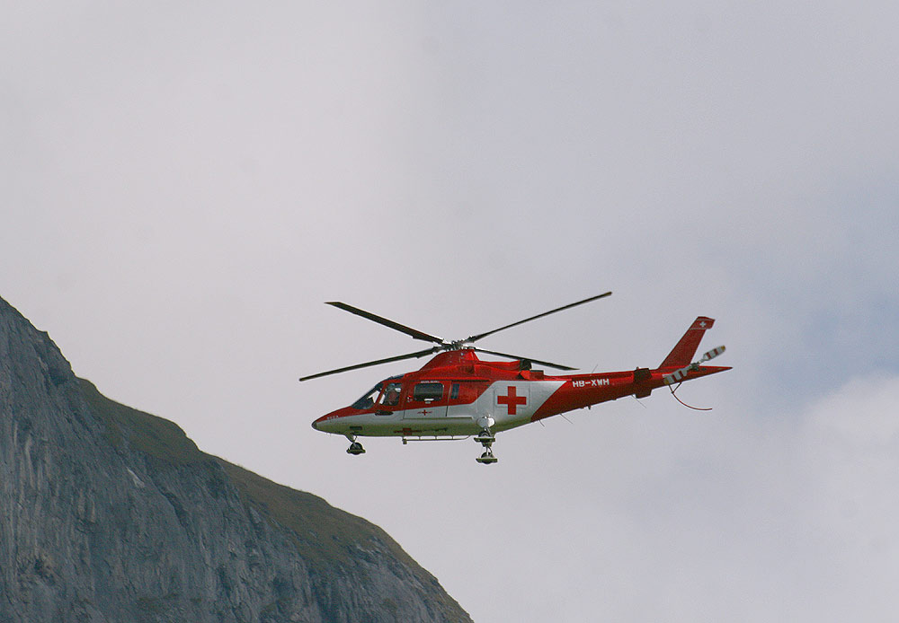Einsatzflug des bald zum Altmaterial werdenden A109K HB-XWH über Grindelwald, September 2008 Foto: jwp/pixxpixx
