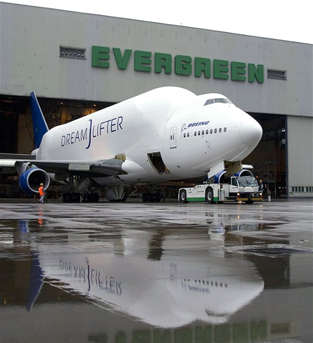 Die Großraumtransporter werden aus dem Jumbojet 747-400 bei Evergreen Aviation Technologies Corp. in Taiwan umgebaut und können maximal 1900 Kubikmeter Fracht aufnehmen - das nahezu dreifache Volumen eines normalen Jumbojets.