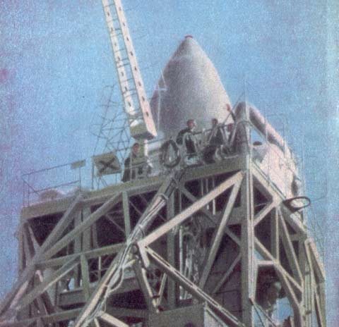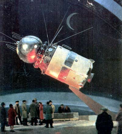 Ein Nachbau von Wostok 1 bei einer Ausstellung in Moskau 1964 |