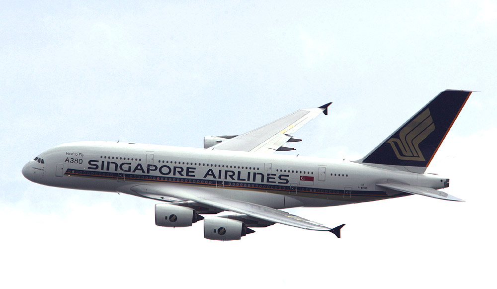 A380 in der Lackierung der SINGAPORE AIRLINES Foto: EADS