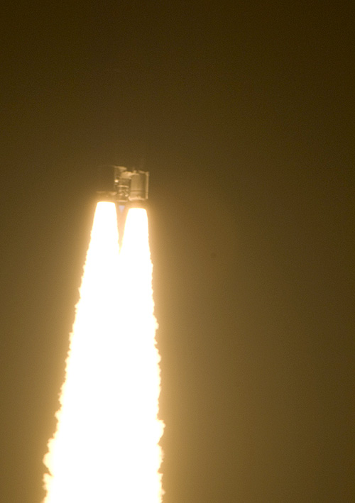 Liftoff of ARIANE 5 ES-ATV in den Nachthimmel über Kourou Foto: ESA - S. Corvaja 2008