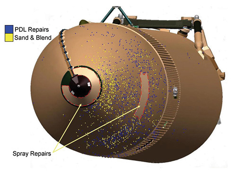 Der im Februar beschädige Außentank mit 2600 Hagelkorn-Dellen