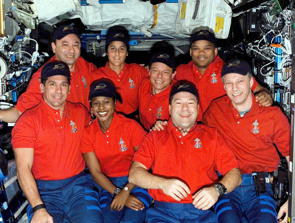 Die Crew der DISCOVERY - STS 116: vordere Reihe von links: Bill Oefelein, Joan Higginbotham, Nicholas Patrick, Thomas Reiter hintere Reihe von links: Kommandant Mark L. Polansky, Sunita Williams, Christer Fuglesang, Bob Curbeam