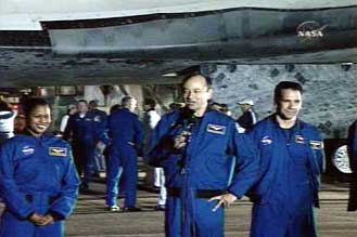 “Es ist ein wenig windig und regnerisch. Aber wir wollten keine weiteren Umstände und danken allen, die geholfen haben, uns zum KENNEDY SPACE CENTER zurückzuholen. Die DISCOVERY ist ein wunderbares Gerät,” sagte Kommandant Mark Polansky noch bevor die Mannschaft das Shuttle verlassen hatte. “Der Erfolg der Mission ist ein Beweis dafür, wie gut alle Beteiligten der NASA für ein Gelingen zusammengearbeitet haben.”