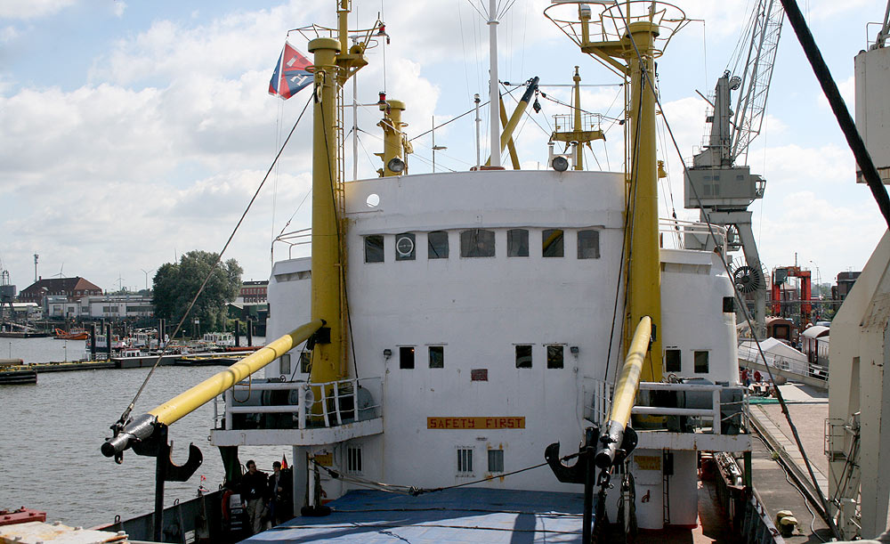 Ladegeschirr des vorderen Laderaumes vor der Kommandobrücke