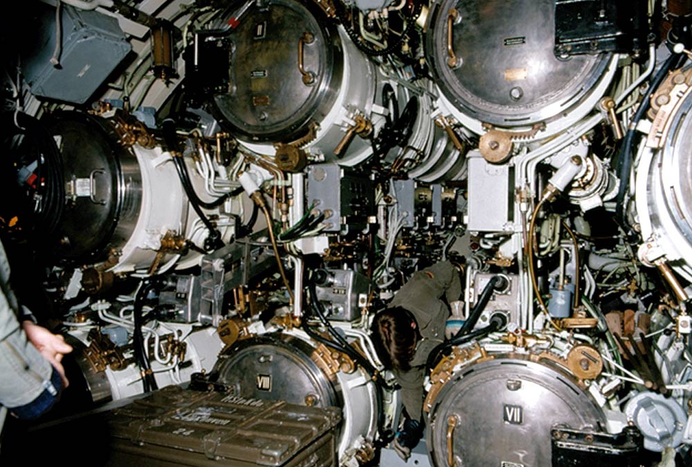 8 Torpedorohre mit römischer Bezifferung im Bug von U-11 Foto: PIZ Marine