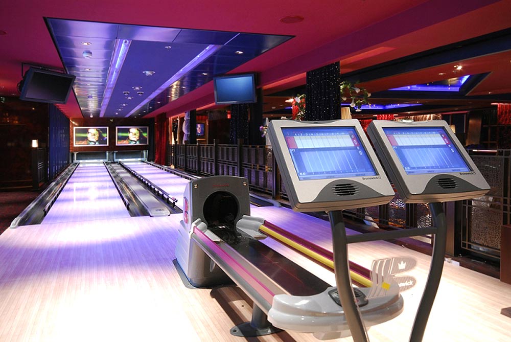 Bliss Ultra Lounge & Night Club (Bowlingbahn) (Deck 7) In diesem Bereich befinden sich erstmalig auf einem Kreuzfahrtschiff vier vollständige Bowlingbahnen. Die Bowlingbahnen sind Teil eines neuartigen, ganztägig geöffneten Sports Bar- und Lounge-Komplexes. Tagsüber besticht die Sports Bar mit Bowling-Bahnen, Flatscreen-Fernsehern zur Übertragung von Sportveranstaltungen sowie Videospielen. Abends dagegen ändert sich die Atmosphäre und es entsteht eine moderne Lounge mit weitläufiger Tanzfläche, DJ und großer Bar. Die farbenfrohe Gestaltung in rot, blau und pink sowie die moderne Einrichtung tragen zum besonderen Ambiente bei.