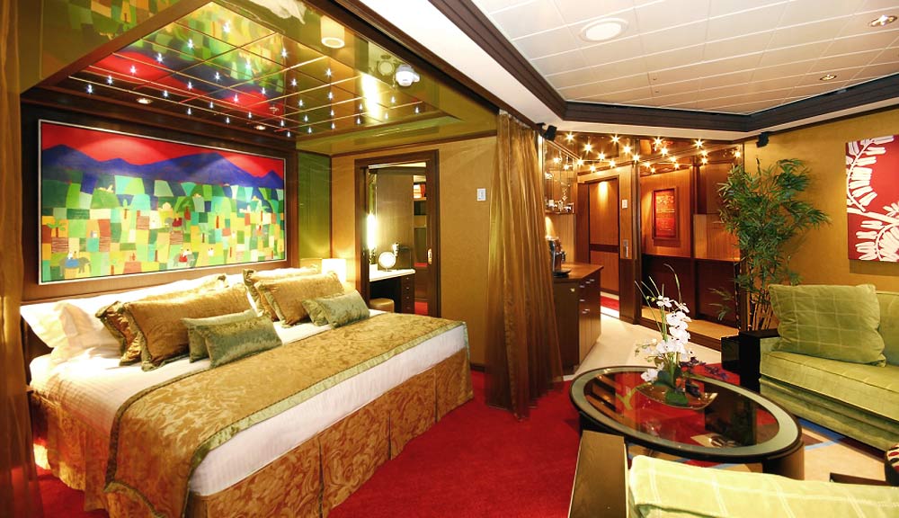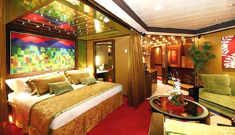 Insgesamt befinden sich an Bord folgende Suiten und Kabinen: 2 Garden Villa Suiten - Top Suiten 6 Owner’s Suiten 38 Penthouse Suiten 132 Mini-Suiten 352 Balkonkabinen 235 Außenkabinen 405 Innenkabinen 12 Behindertenkabinen - außen mit Balkon 8 Behindertenkabinen - außen mit Fenster 7 Behindertenkabinen - innen