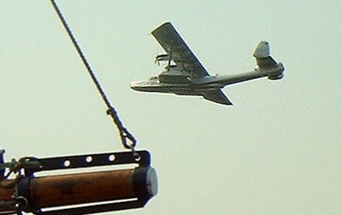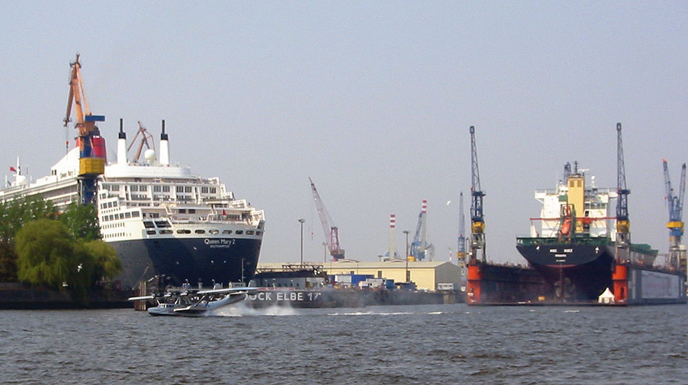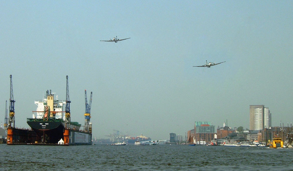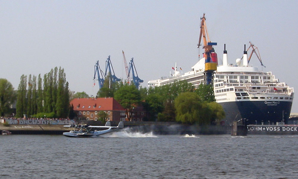 Leider nur schwer zu erkennen: mittig, knapp über der Elbe die DO 24 ATT