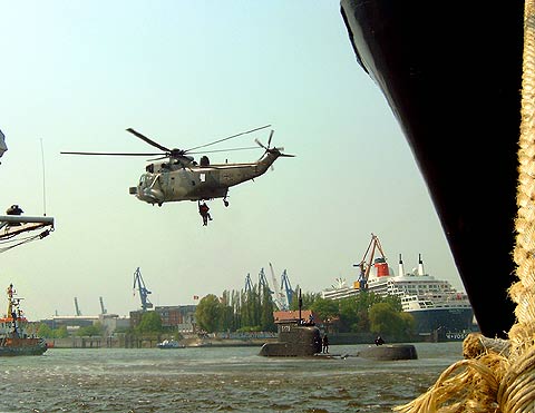 Übernahme (Fastroping) von Matrosen des U-Bootes U30 in den SAR-Hubschrauber Sea King