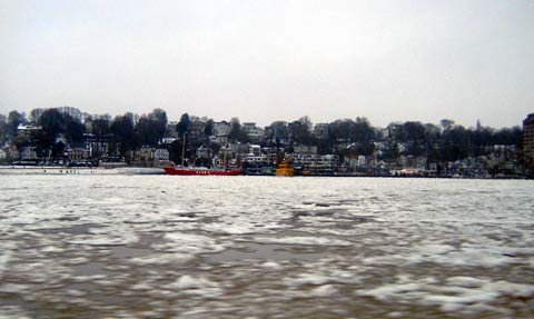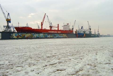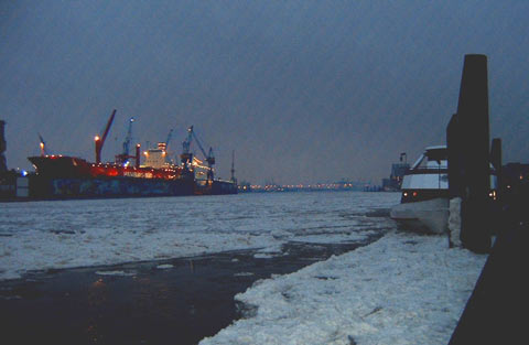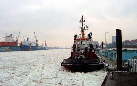 ▲ Nur wenige Schwierigkeiten bereitet den Schiffen der Eisgang im Hamburger Hafen.