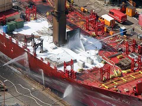Am zweiten Brandtag, heute am 9. August 2006, versucht die Feuerwehr das Übergreifen auf Maschinenraum und Decksaufbauten zu verhindern. Inzwischen brennt wohl das gesamte Isoliermaterial in den Frachträumen. Eine Brandbekämpfung direkt in den Laderäumen ist für Mensch und Material wegen der dort herrschenden Hitze von ungefähr 300 Grad nicht möglich. Das Schiff kann zurzeit nur von außen mit Seewasser gekühlt werden. Ein Wassereinsatz in das Schiff hinein ist wegen der Kippgefahr im Dock nicht möglich. Über die Brandursache kann noch gar nichts vermutet werden.