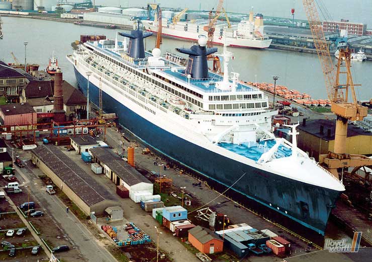 Auch die NORWAY war sechsmal bei Lloyd im Dock. 1979 entstand hier aus der FRANCE die NORWAY.