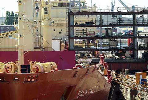 Am 13. Juli 2006 ist die CALA PALMA als erste von 4 Schwesterschiffen bei der Llodys Werft in Bremerhaven eingetroffen. Die erst 6 Jahre alten Schiffe sind bisher 174 m lang und 24 m breit und sollen bei Lloyds durch den Einbau einer Mittelschiffsektion um je 15,67 m verlängert werden.