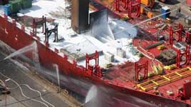 Brand nach Verlängerung Das Kühlschiff CALA PALMA brennt im Dock