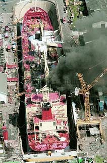 Leider hat nun ein Brand, der am 8. August nachmittags ausbrach, die Pläne von Werft und Reeder zunichte gemacht. 24 Stunden nach Ausbruch des Feuers hatte die Feuerwehr Bremerhaven den Brand noch nicht unter Kontrolle. Dichter dunkler Qualm zog über Bremerhaven hinweg und verursachte bei 5 Personen leichte Rauchvergiftungen.