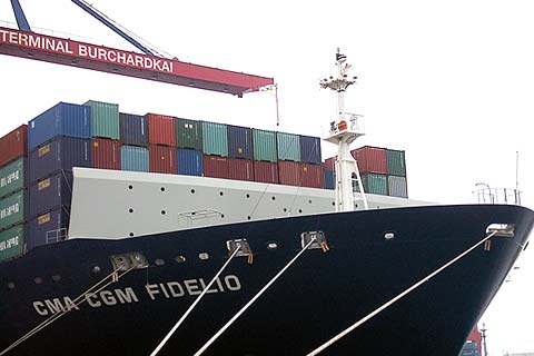 Das Containerschiff CMA CGM FIDELIO der Reederei CMA CGM gehört zusammen mit ihrem Schwesterschiff CMA CGM MEDEA mit einer Kapazität von 9.415 TEU derzeit zu den größten Containerschiffen weltweit. CMA CGM France S.A. mit Sitz in Marseille ist die drittgrößte Containerreederei der Welt. Die Reederei hatte den Bauauftrag für das 349 Meter lange und 42,8 Meter breite Schiff an die Hyundai Werft in Korea vergeben. Der Containerriese hat einen Tiefgang von 14,5 Meter. Das Schiff verbraucht pro Seetag durchschnittlich ca. 270 Tonnen Schweröl und fährt mit einer Geschwindigkeit von 24,1 Knoten.