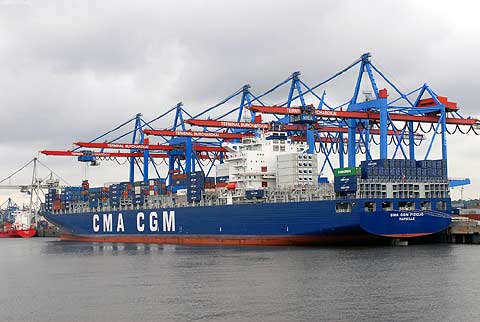 In Hamburg wurden 2300 TEU (ein Teu entspricht einem 20-Fuß-Container: 6 m x 2,44 x 2,44 m) gelöscht und 2137 TEU neu verladen. Für die französische Reederei CMA CGM ist der Hamburger Hafen der wichtigste Im- und Exporthafen in Nordeuropa. Am 27. Juni 2006 hat der Containerriese Hamburg mit Kurs auf Marseille wieder verlassen. In Marseille wird das Containerschiff am 4. Juli 2006 außerplanmäßig eintreffen und getauft werden.