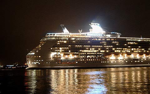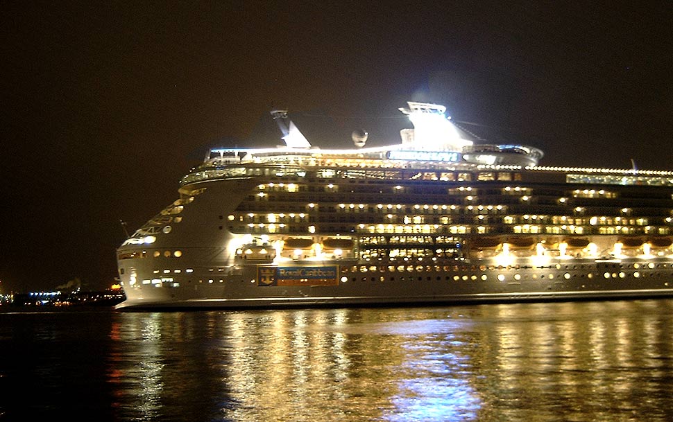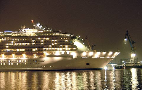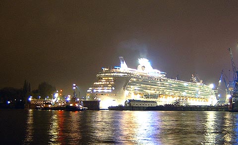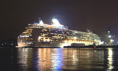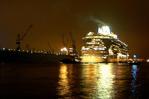 ▲ 23.20 Uhr: Die FREEDOM OF THE SEAS nimmt Fahrt auf und verläßt Hamburg für eine 12-stündige Probefahrt auf der Nordsee.