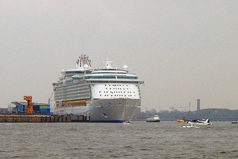 ▲Fertig zum Abschied von Hamburg wohl für immer. Hamburgs Wasserflieger und der HADAG-Dampfer Kirchdorf kreuzen ein letztes Mal vor der FREEDOM OF THE SEAS.
