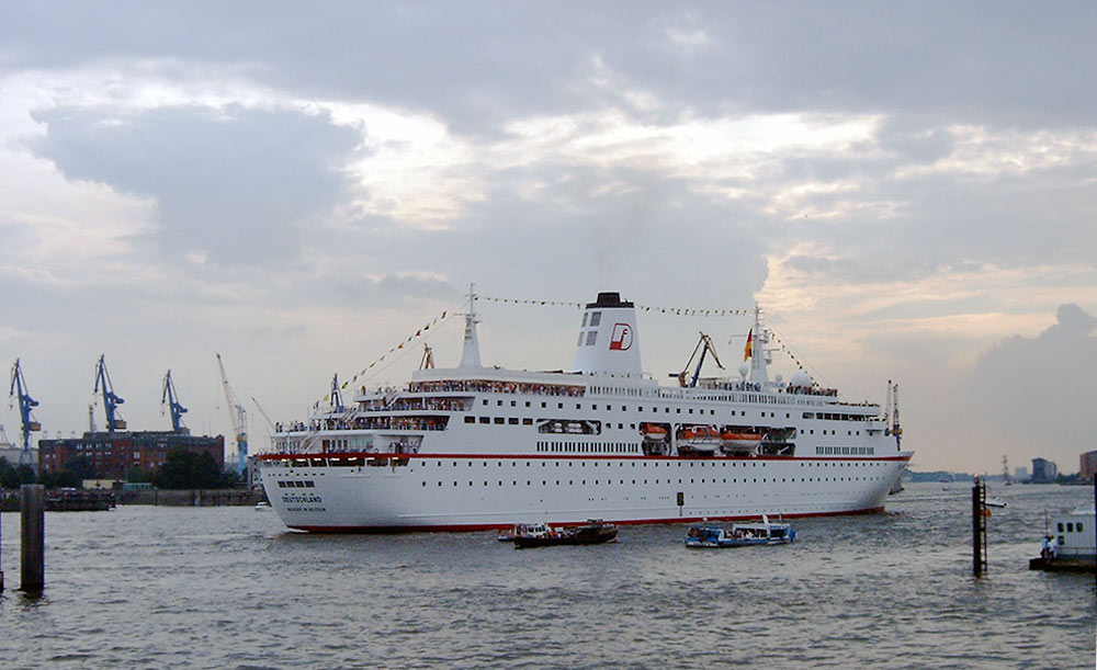 Gegen 19 Uhr startete die MS DEUTSCHLAND eine Kreuzfahrt durch den Nord-Ostsee-Kanal in die Ostsee