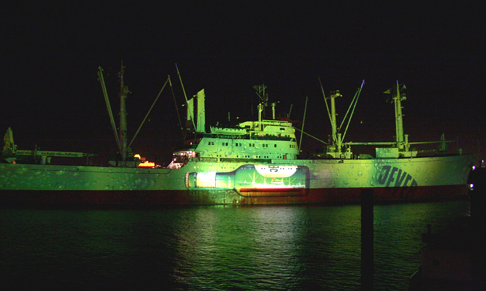 Mit einer gigantischen Illuminationsshow an der CAP SAN DIEGO sorgt das Friesische Brauhaus zu Jever für ein weiteres Highlight beim 818. Hafengeburtstag Hamburg. Die CAP SAN DIEGO, das 160 Meter lange Museumsschiff, wird vom 11. bis 13. Mai allabendlich zur riesigen Projektionsfläche an der Überseebrücke im Hamburger Hafen. Eine ausgefeilte Lichttechnik verwandelt die Längsseite des Schiffes, rund 3.000 qm Fläche, in eine außergewöhnliche Farb- und Lichterwelt.
