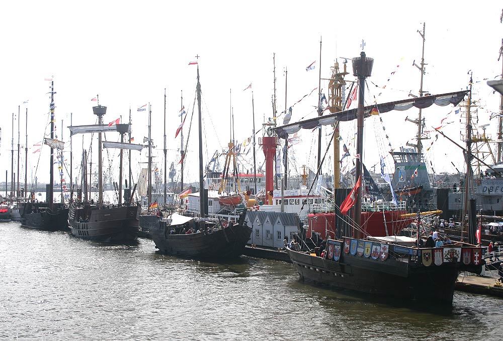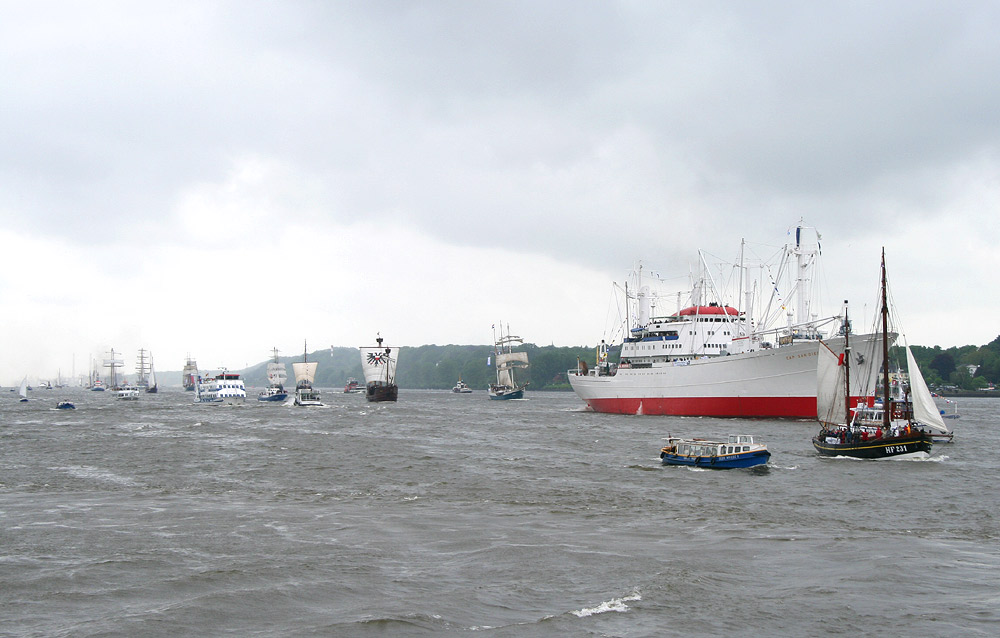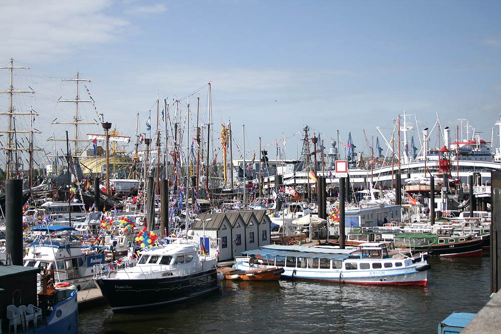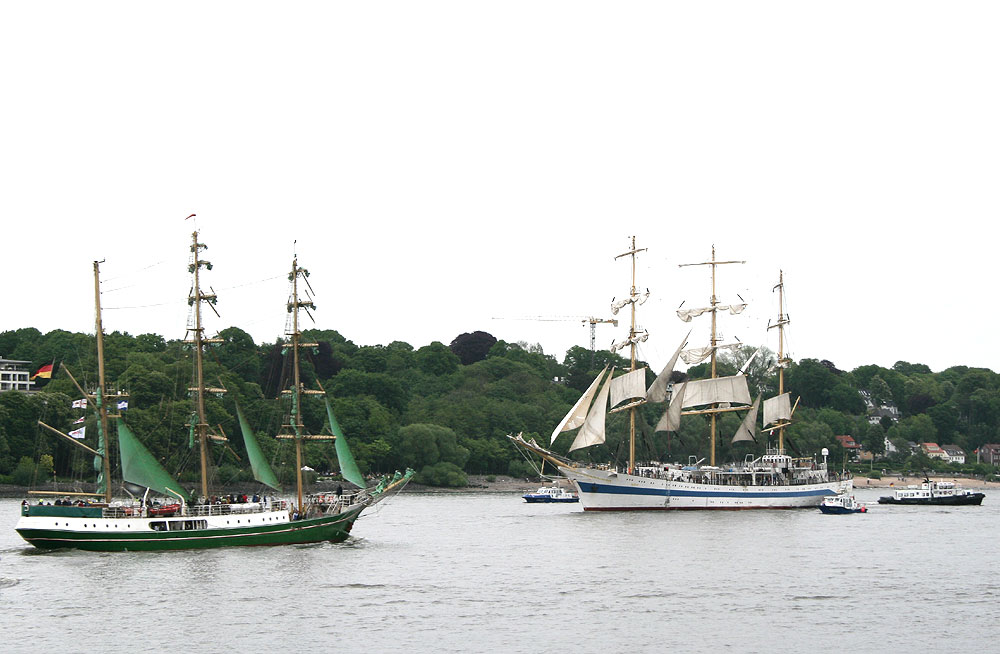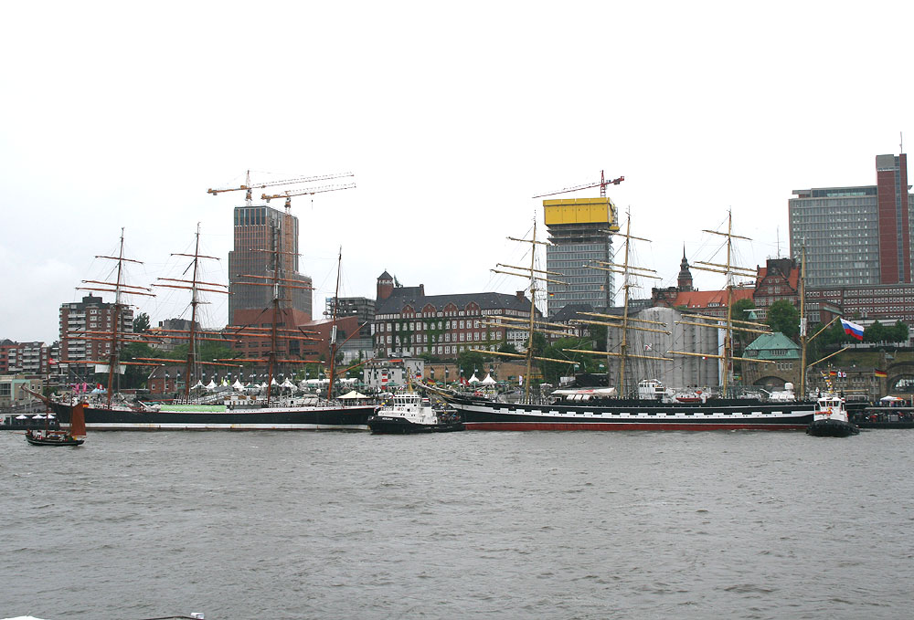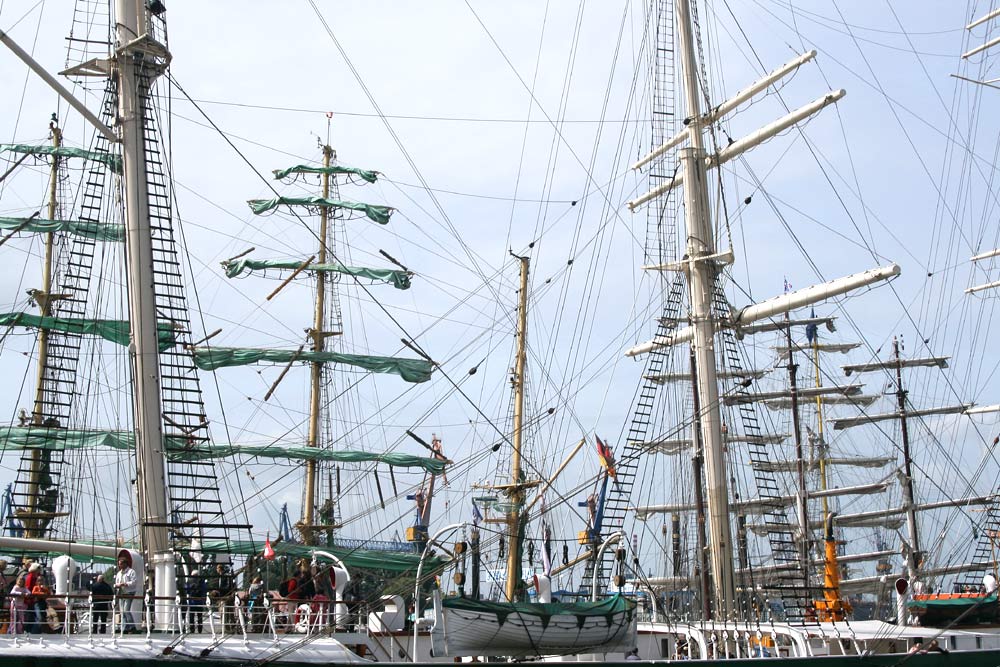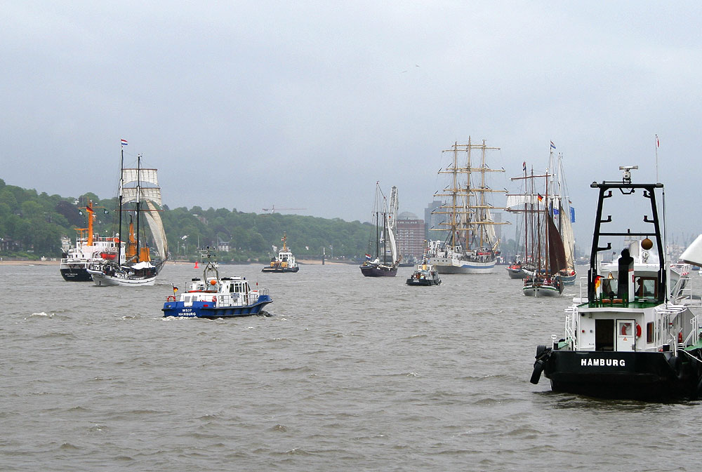 Mit viel Begeisterung wurden die Windjammer SEDOV, KRUSENSHTERN und MIR empfangen. Die SEDOV, die als größter traditioneller Segler gilt, präsentierte sich noch in den Filmfarben schwarz und weiß der PAMIR, für die sie Drehort im gleichnamigen Film war. Auch die KRUSENSHTERN, der letzte legendäre 1926 als PADUA für die Hamburger Reederei Laeisz in Dienst gestellte Flying-P-Liner wurde seinem Ruf als schönster Windjammer mit gehißten Untermarssegeln und Stagsegeln gerecht. Den Auftritt des Trios machte die MIR, der schnellste Windjammer der Welt, komplett. Am Samstag traf auch noch der Rahsegler ALEXANDER VON HUMBOLDT, im Hamburger Hafen ein. Insgesamt machten mehr als 300 Schiffe im Hafen fest. Großer Beliebtheit erfreute sich am Samstagabend das weltweit einmalige Schlepperballett. Unter der Regie von Kapitän Dietrich Petersen drehten die Hafenschlepper zu Walzerklängen und klassischer Musik Pirouetten auf der Elbe vor den Landungsbrücken.