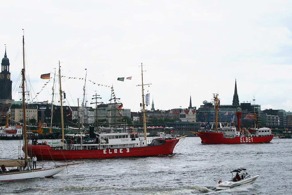 Seltene Begegnung: einlaufend Feuerschiff ELBE 3 vom Museumshafen Oevelgönne und auslaufend Feuerschiff ELBE 1 BÜRGERMEISTER O’SWALD aus Cuxhaven
