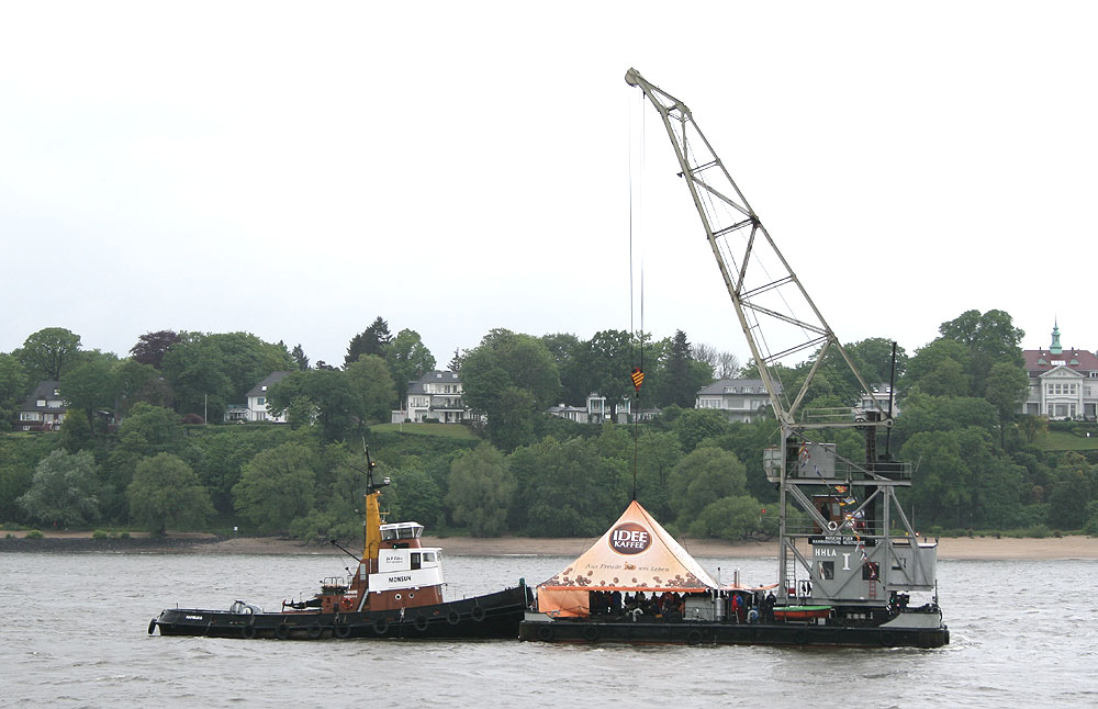 Party auf dem Kran. Der Schubverband des Museumshafen Oevelgönne war ständig unterwegs