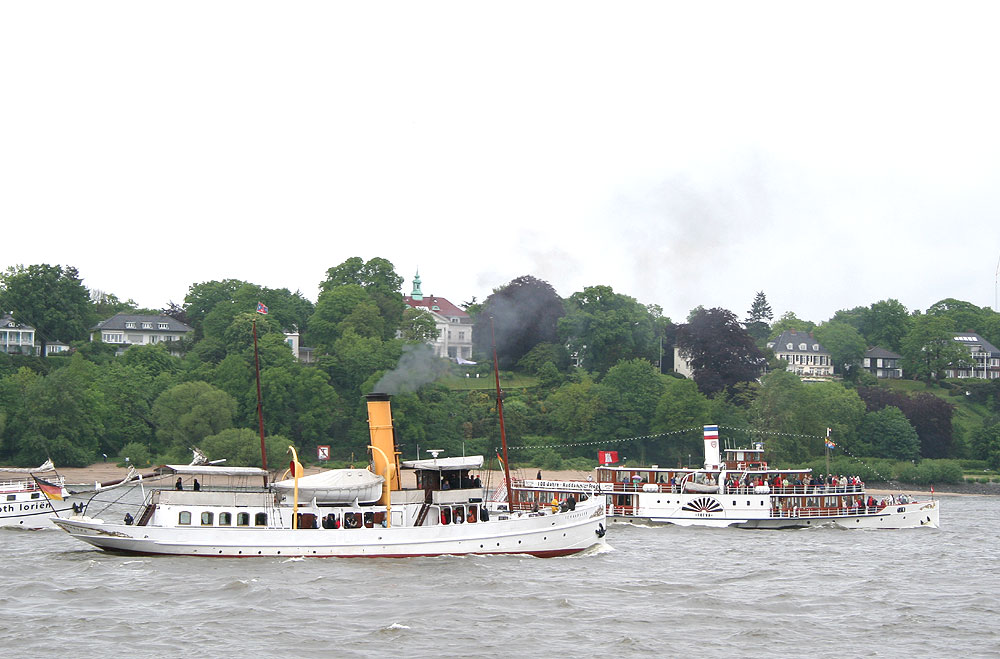Dampfschiffe unter sich: der ehemalige Senatsdampfer SCHAARHÖRN (Baujahr 1907) und der Raddampfer FREYA (Baujahr 1905)