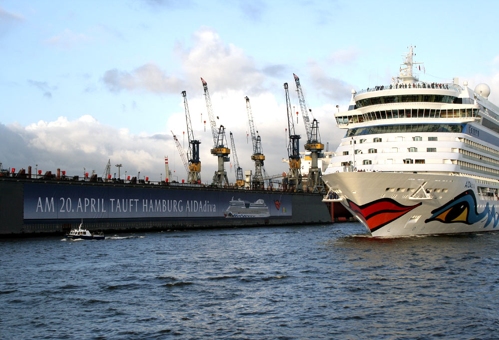 Erstes Clubschiff für Aida Cruises, die AIDAdiva, wird ausgedockt