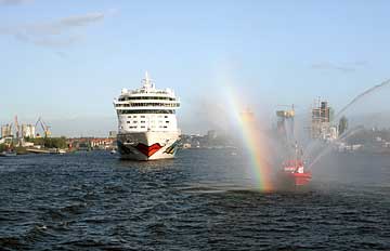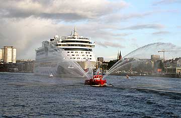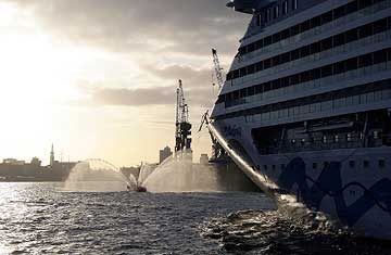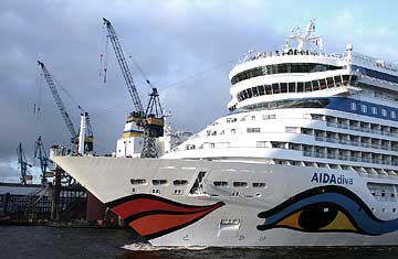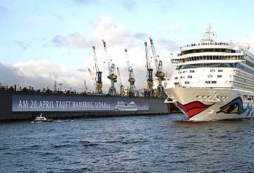Am 16. April 2007 hat die Meyer Werft in Papenburg das neue Kreuzfahrtschiff AIDAdiva an die AIDA-Reederei übergeben. Das nagelneue -noch ungetaufte- Schiff lief am 18. April 2007 um 7 Uhr in Hamburg ein. Am 20.4.2007 wurde die AIDAdiva in Hamburg getauft. Am Abend krönte eine spektakuläre Oper aus Licht und Feuer die Tauffeierlichkeiten. weiter zur Taufe...