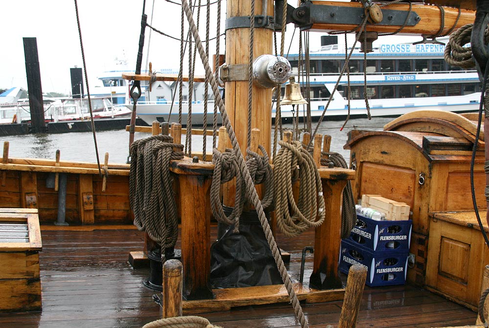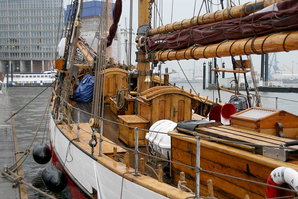 Fertig ausgerüstet und bereit zum Ablegen liegt die 78 Jahre alte DAGMAR AAEN im Hamburger City-Sportboothafen.
