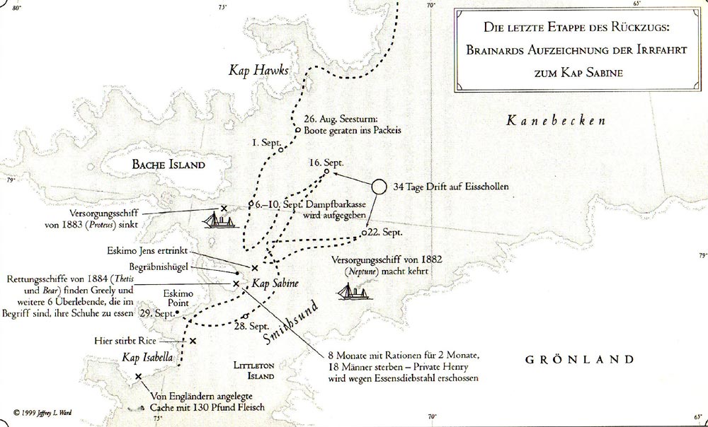 Historische Karte der Greely-Expeditiion Quelle: Leonard F. Guttridge - “Die Geister von Kap Sabine”