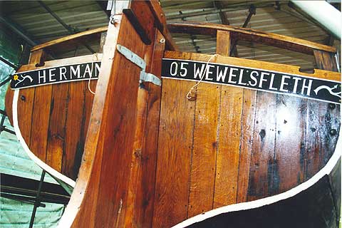 Der letzte original erhaltene hölzerne Fracht-Ewer ist der Stiftung Hamburg Maritim von der Stadt Itzehoe als Dauer-Leihgabe übertragen worden. Das 1905 in Wewelsfleth gebaute Schiff ist das letzte Exemplar einer Flotte von über 1.000 Ewern dieses Typs, die noch vor 100 Jahren auf der Niederelbe die Versorgung Hamburgs sicherstellten. Für den 1999 zuletzt aufwendig restaurierten Fracht-Ewer konnte in Itzehoe keine angemessene Präsentation geschaffen werden. “Wir sind sehr glücklich, daß der Rat der Stadt Itzehoe den Ewer in die Obhut unserer Stiftung gibt”, so Reinhard Wolf, Vorstandsvorsitzender der Stiftung Hamburg Maritim, “in den 50er Schuppen haben wir ideale Möglichkeiten, dieses beeindruckende Schiff zur Demonstration historischer Schiffbautechnik und der Niederelbe-Schifffahrt einer breiten Öffentlichkeit zu präsentieren.”