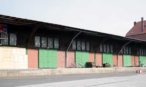Im Hintergrund die zu den 50er Schuppen gehörenden historischen Gebäude
