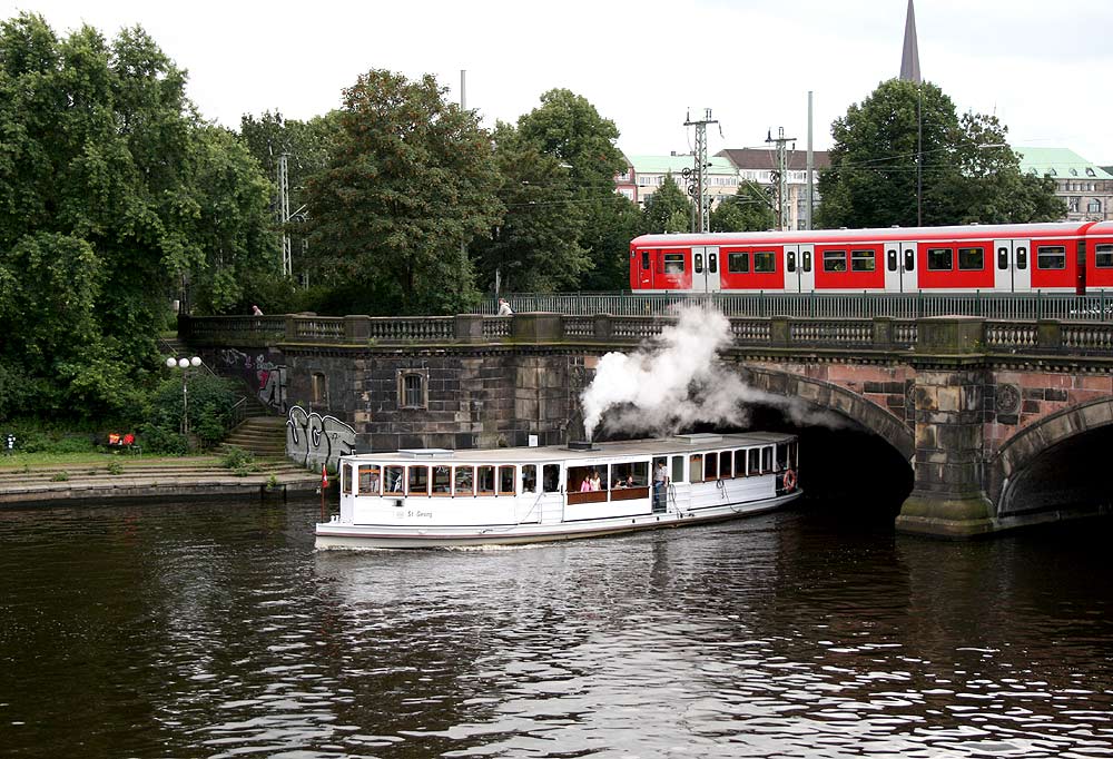 Die Vorgänger-Generation BR 472 auf der Lombardsbrücke am Beginn der Verbindungsbahn