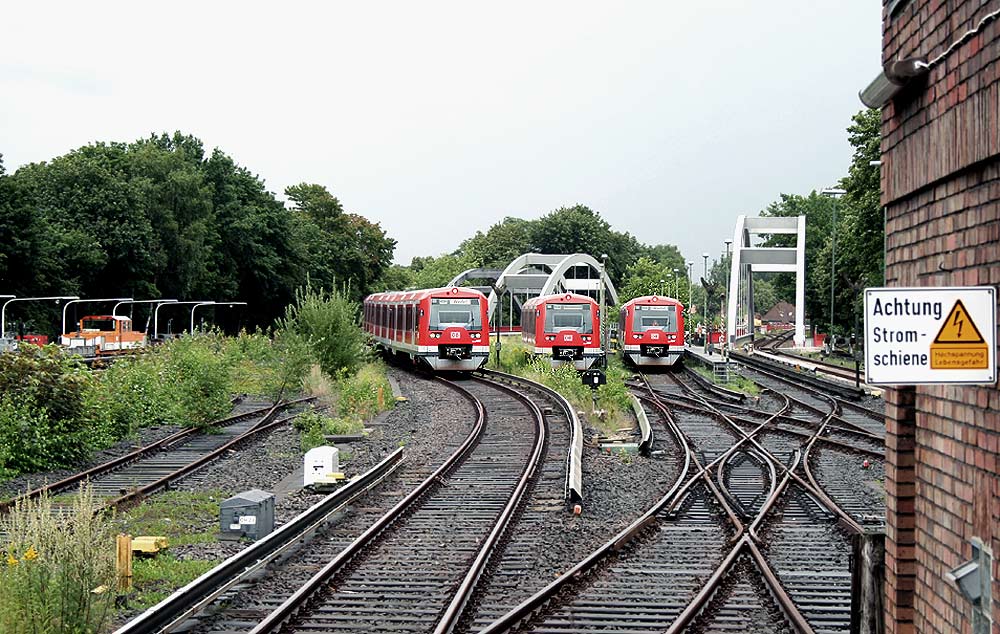 Gleiselder am Bahnhof Diebsteich mit Triebzügen BR 474 und 472 der S-Bahn Hamburg Foto: DB AG/Jazbec